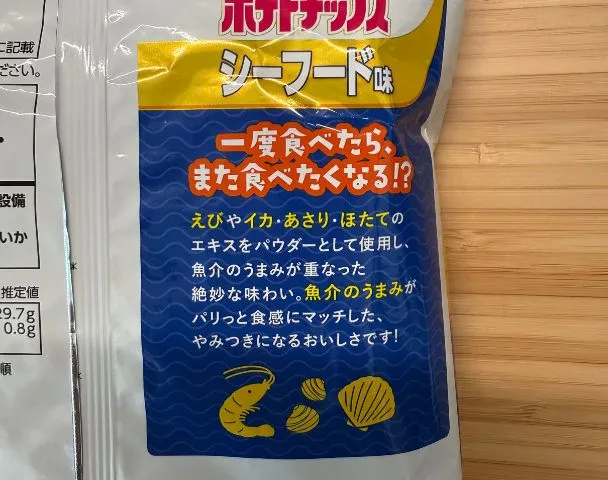 そして、運命の一枚を口へ。パリッとした軽快な食感とともに、じゃがいもの優しい甘みが広がります。その直後、やってきました…シーフードの旨みのビッグウェーブが!