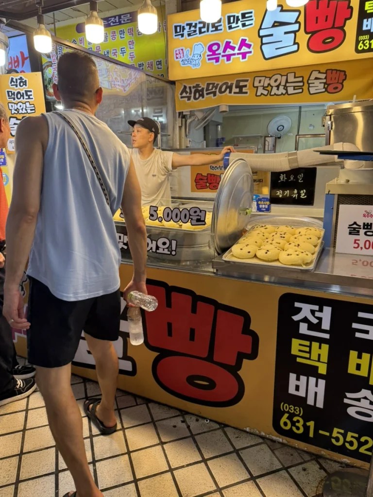 そしてもう一つ、「市場で見つけた隠れ名物「スルパン」のお店は大行列!マッコリ風味の生地を蒸し上げた韓国式蒸しパンで、ふわっと香る優しい甘さがクセになります。シンプルな見た目からは想像できない、ほっこり美味しさに感動。