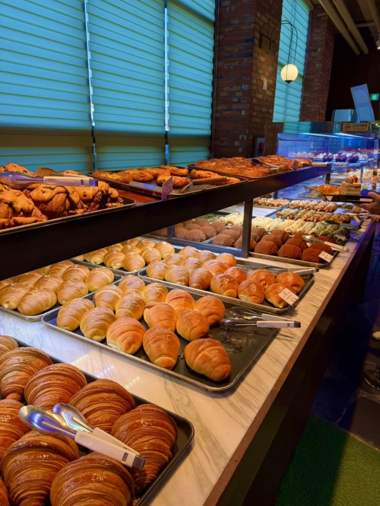 私が訪れたのは土曜日の16時頃。店内は多くの人で賑わっていましたが、席数が非常に多いため、座る場所を見つけるのに苦労はしませんでした。意外にも、パンやドリンクを注文するカウンターは空いていて、スムーズに購入できました。ただ、口コミを見ると週末の昼間は満席になることも多いようです。窓際の特等席など、席を選びたい場合は午前中の早い時間に訪れるのが賢明かもしれません。