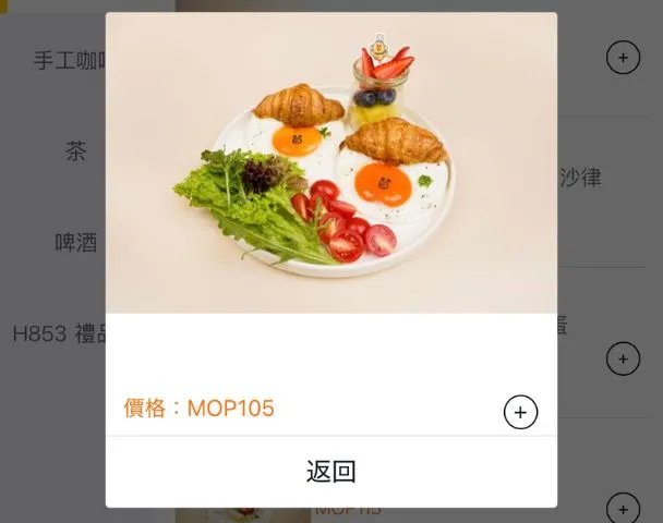 どちらも美味しかったですが、特にDセットの「スモークサーモンマフィンとベネディクトエッグ」(単品価格 MOP$128)はナイフを入れると、とろりとした黄身が溢れ出し、濃厚な卵の風味とスモークサーモンの塩気が絶妙にマッチ。いい感じです。