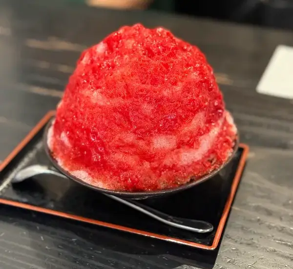 期待を裏切らない絶品でした。甘酸っぱい苺の果肉がたっぷりのシロップと、繊細な氷が口の中で見事に調和します。甘すぎず、苺本来のフレッシュな風味が際立っていました。