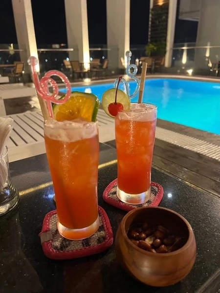 プールサイドにはバーも併設されており、カクテルを片手にサンセットを待つ時間はまさに至福のひととき。プールサイドで飲むスプモーニ(カクテル)は、格別でした!