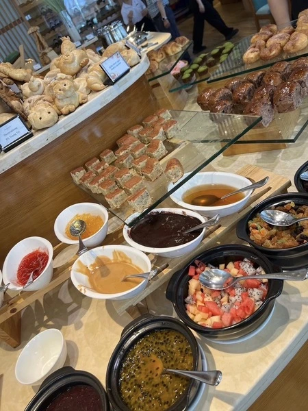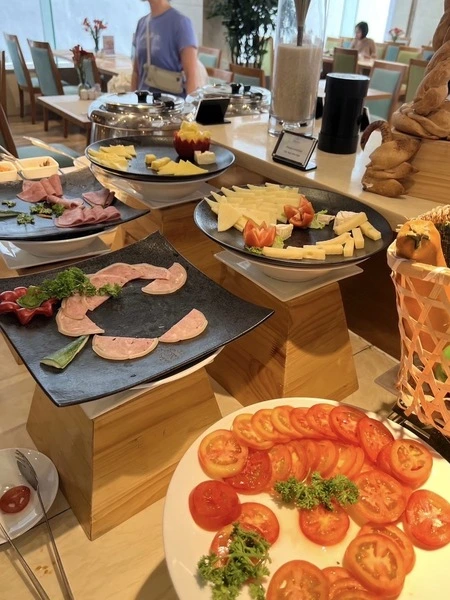 旅行の楽しみの一つが朝食ですよね。ダイヤモンドシーホテルの朝食は、期待を裏切りませんでした。ベトナム料理の定番であるフォーやバインミーはもちろん、新鮮なフルーツ、サラダ、洋食メニューまで、種類豊富なビュッフェ形式で提供されます。