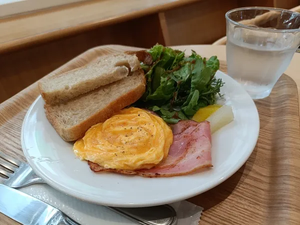館内にあるカフェ「サンドイッチとコーヒー ampere 荻窪」も魅力の一つ。緑豊かな庭を眺めながら、美味しいサンドイッチをいただきました。読書の合間の休憩にぴったりで、おしゃれな雰囲気は図書館にいることを忘れさせてくれます。
