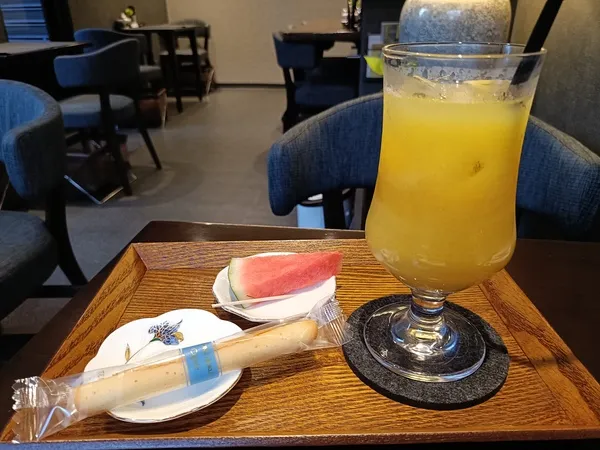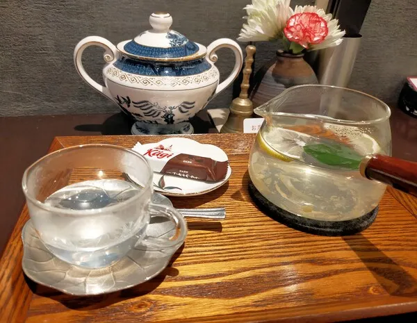 私が注文したのは、SNSでもよく見かける「二段セット」。神戸のパティシエが作るというハーフサイズのケーキに、ドライフルーツや茶梅が添えられた、まるでアフタヌーンティーのような一皿です。この日のケーキは、濃厚ながらも甘さ控えめの抹茶ケーキ。添えられた梅の烏龍茶漬けのお菓子が、絶妙なアクセントになっていました。一杯ずつ丁寧に淹れられたドリンクと、一口サイズの高級なお菓子。この組み合わせが、日常を忘れさせてくれる贅沢な時間を作り出してくれます。