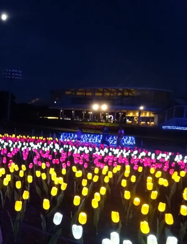 メイン会場のイルミネーションは毎年テーマが変わり、壮大な音楽と光のショーが繰り広げられます。2024-2025年のテーマは「名峰富士」だそうで、そのスケールの大きさに圧倒されました。