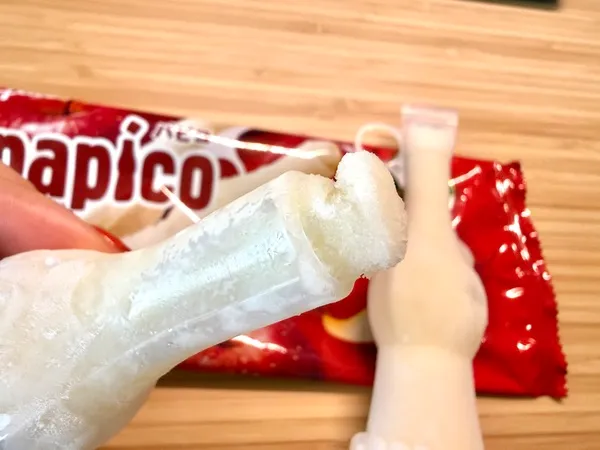 これは、パピコが長年培ってきた独自のなめらか食感の技術の賜物なのでしょう。氷菓でありながら、まるで上質なジェラートを食べているかのような満足感があります。例えるなら、「すりおろしたりんごを、そのまま丁寧に凍らせてクリーミーに仕上げた」ような感覚。このギャップには、良い意味で完全に裏切られました。