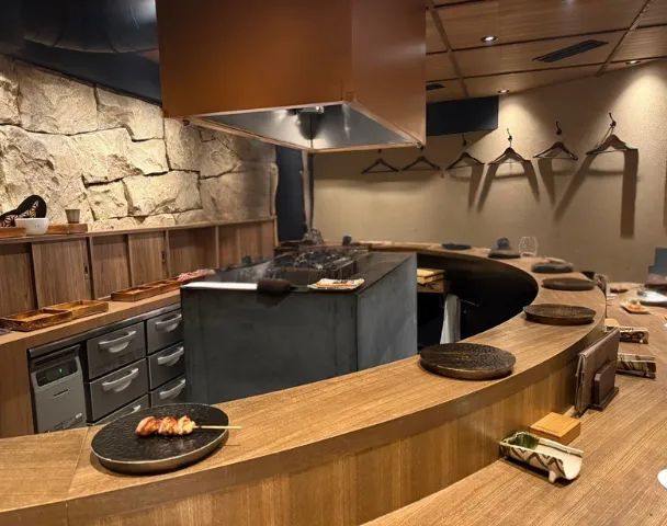 洗練された雰囲気ながら、どこか温かみを感じさせる空間で、厳選された地鶏を使った本格的な炭火焼鳥が楽しめます。
