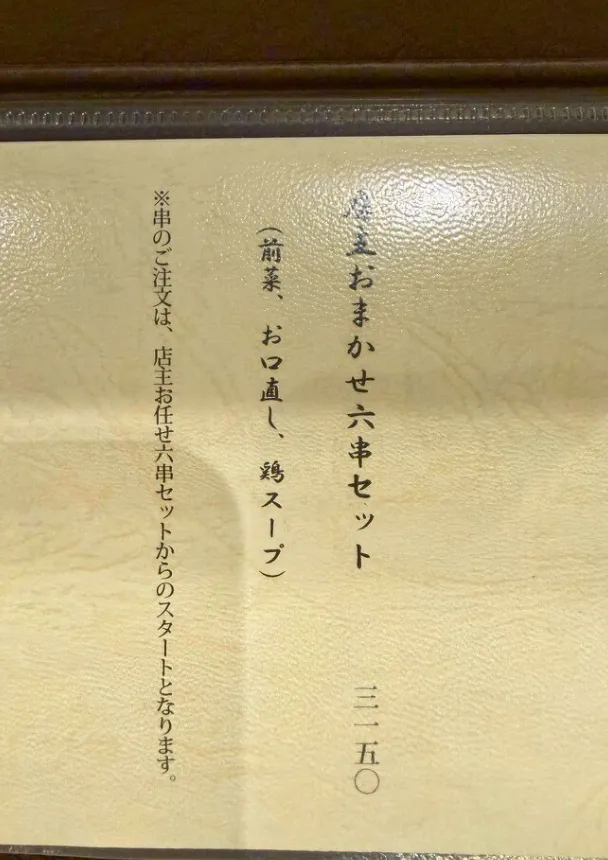 メニューと注文システム:「まずはおまかせ6串から」という粋な流儀