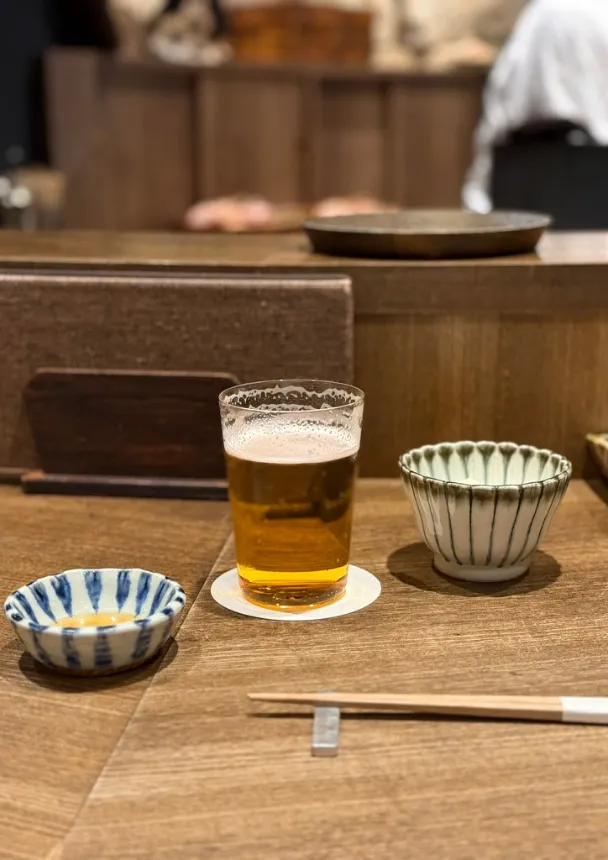 私たちが訪れたのは平日の夜でしたが、カウンター席はほぼ満席。客層は30代〜50代が中心で、落ち着いた雰囲気のカップルや、接待らしきビジネスマンの姿が見られました。静かに会話と食事を楽しむ大人たちが集う空間で、ゆったりとした時間を過ごしたい日にぴったりの場所です。予約をしてから訪れることを強くおすすめします。