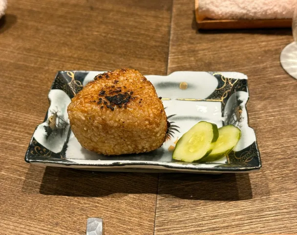 そして最後どうしても食べたくて、、〆に頼んだ「焼きおにぎり」は、「10分ほどお時間いただきます」とのこと。