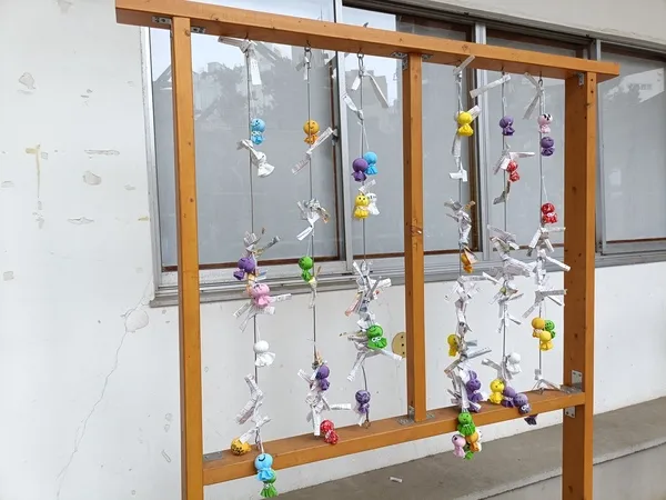 カラフルな「てるてる守り」や、おみくじを結ぶ「照々みくじ」も可愛らしく、境内を明るく彩っていました。