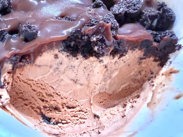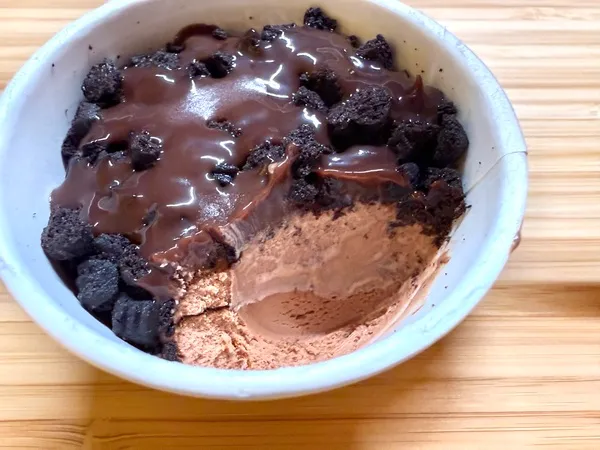 冷たいアイス、ねっちりしたクッキー、とろりとしたソース。この三位一体の食感が口の中で混ざり合う様は、まさに至福。まるで濃厚なチョコレートブラウニーを、最も贅沢な形でアイスにしたような感覚でした。