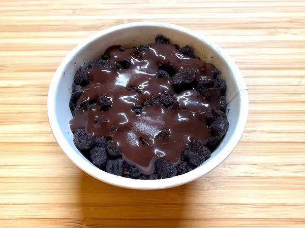 黒を基調とした高級感あふれるパッケージを開けると、まず目に飛び込んでくるのは、艶やかに輝く漆黒のバターココアソース。その下には、まるで黒い宝石のようにチョコレートクッキーが散りばめられています。