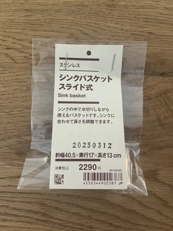 今回ご紹介するのは、無印良品で販売されているキッチン用品の一つ。その名の通り、シンクに渡して使うタイプの水切りバスケットです。