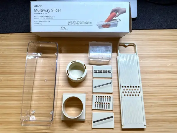 「マルチWAYスライサー」は、生活雑貨ブランド3COINSのキッチンライン「KITINTO」から発売されている大人気商品。その名の通り、1台で何役もこなす多機能スライサーです。
