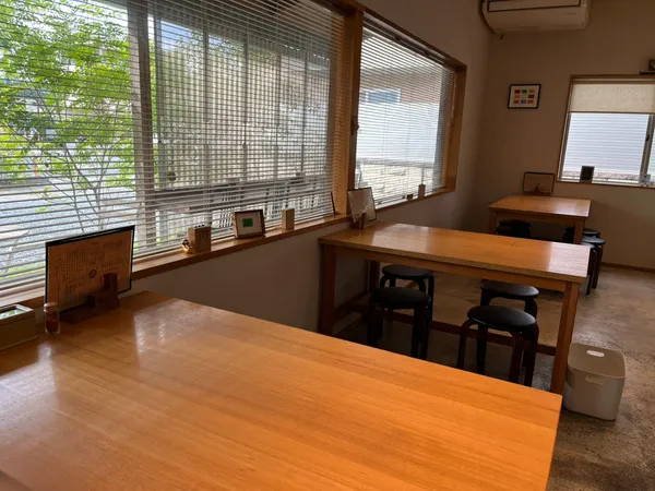 お店に足を踏み入れて、まず驚くのがその内装です。いわゆる昔ながらのうどん屋さんのイメージとは一線を画し、窓が大きく天井も高い、まるでオシャレなカフェのような空間が広がっています。