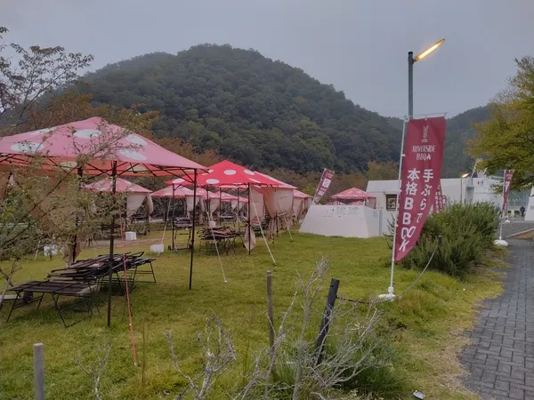 そして、屋外に目を向ければ、広大なBBQエリアやキャンプサイトが広がっています。特に、人気アウトドアブランド「DOD」とコラボしたキャンプ場は、おしゃれで快適な空間が広がっており、手ぶらでグランピングが楽しめます。ここで使う食材も「里の市」で調達できるので、本当に便利です。