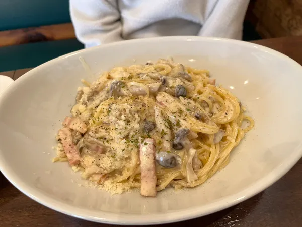 今回のお目当ては、口コミでも評判のクリームパスタ。