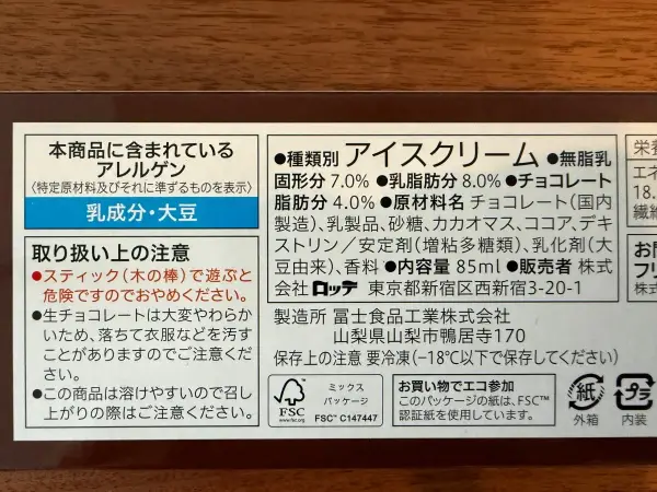 ご褒美アイスとはいえ、カロリーも気になるところ。パッケージ裏面の表示をチェックしてみましょう。