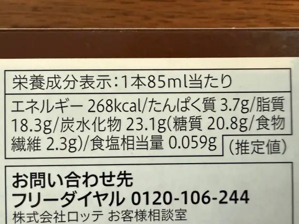 内容量85mlと少し小ぶりながら、濃厚な分、カロリーはしっかりめ。まさに「贅沢」という言葉がぴったりですね。