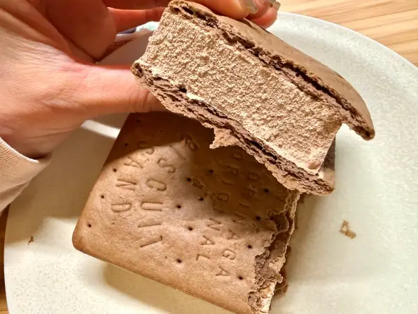 - シンプルさ故の物足りなさ?:ナッツやチョコチップのような食感のアクセントはありません。あくまで「ビスケットとアイス」というシンプルな構成なので、ゴージャスなパフェのようなスイーツを求める方には少し物足りないかもしれません。