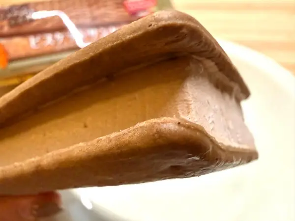 そして、心臓部であるチョコアイス。エクアドル産カカオを使用しているだけあって、ただ甘いだけではない、“ほどよいビター感”と華やかな香りが特徴です。