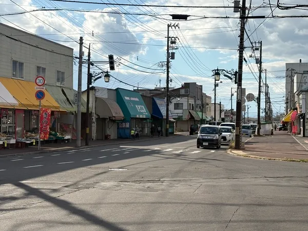 2025年10月31日の午後2時、私は函館市電の「千代台」電停で降りました。公式な最寄り駅は一つ手前の「堀川町」のようですが、千代台からも徒歩5分ほど。大きな看板が目印となり、迷うことなく到着できました。