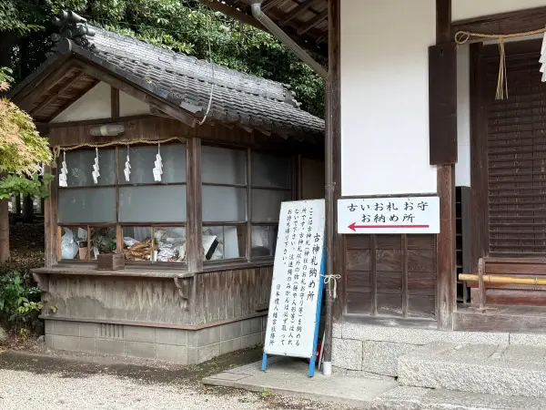 「古神札納め所」の看板と、古い佇まいの建物です。