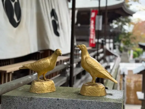 八幡神の使者とされる鳩の像が金色の姿で奉納されています。