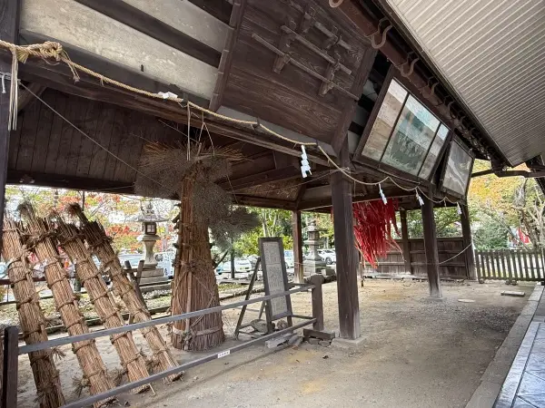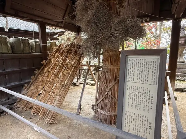 八幡まつりで使われる大きな松明(わら製)の部材が大切に保管されています。