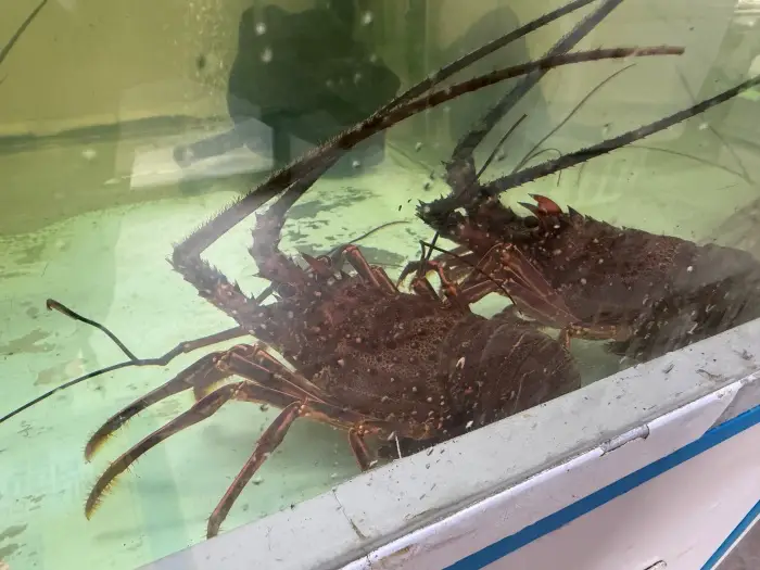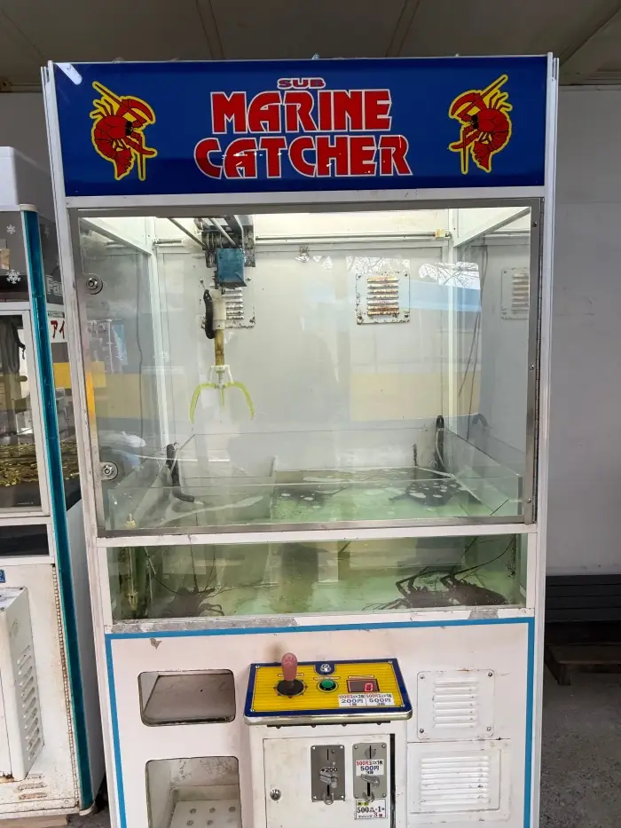 レストランの近くには、ちょっとしたゲームコーナーもありました。懐かしい雰囲気の乗り物ゲームに混じって、なんと本物の伊勢海老が獲れるクレーンゲームを発見!これは挑戦してみたくなりますよね。