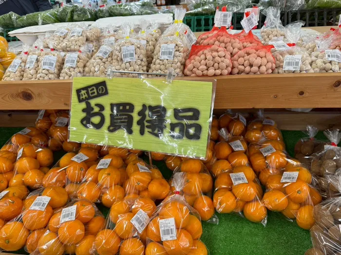 大きな大根がとても安かったので驚きました。新鮮なイチゴや地元の野菜、ブロッコリーも購入しました。隣にはコンビニや黄ニララーメン屋、鳥料理の店などが揃っていて、便利ですね。