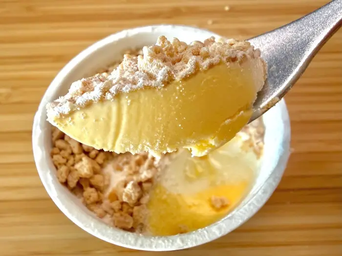 実際に7分待ってみると、スプーンがすっと滑らかに入る硬さに。口に入れると、アイスがとろりと溶け、チーズの香りが一層引き立ちます。