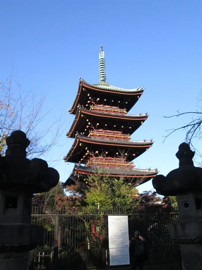 参道の右手には、美しい五重塔が見えます。これも国指定重要文化財ですが、実は現在は上野動物園の敷地内にあり、東京都が管理しています。元々は東照宮の一部でしたが、明治時代の神仏分離令により寛永寺に譲渡され、その後東京都の管理となったという複雑な歴史を持ちます。東照宮側からしか見られない「正面」の姿は、ここからの眺めが一番です。
