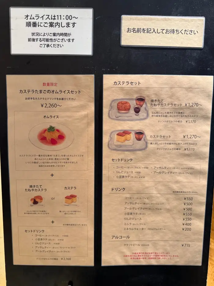 カステラ作りに使うこだわりの卵で作ったオムライスで、いりこ出汁のあんかけという和風テイストが気になります…!ぜひ次に行った時は食べてみたいところです。