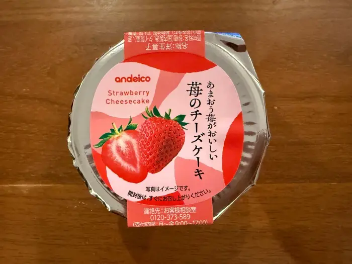 スーパーやコンビニで手に入るアンデイコの「苺のチーズケーキ」。シンプルなパッケージが目印です。