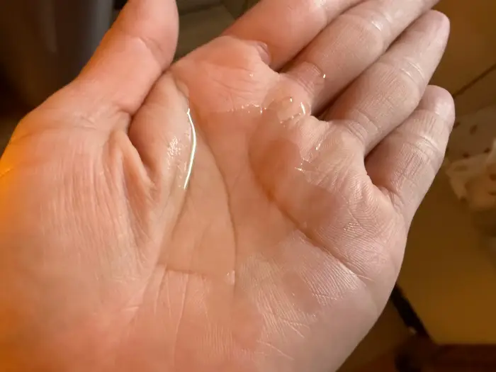 テクスチャーは、本当に「水みたい」の一言。手のひらに出すと、サラサラと流れていきます。