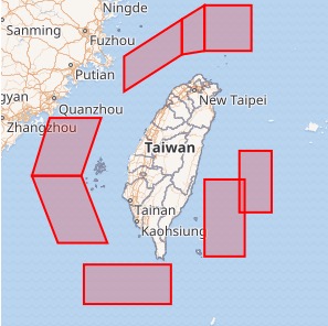 台湾本島に最接近、領海内に設定された演習区域