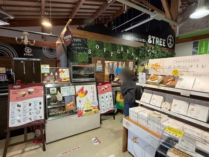 店内には入れませんでしたが、テイクアウトであればご当地ソフトクリームなどを味わうことができます。