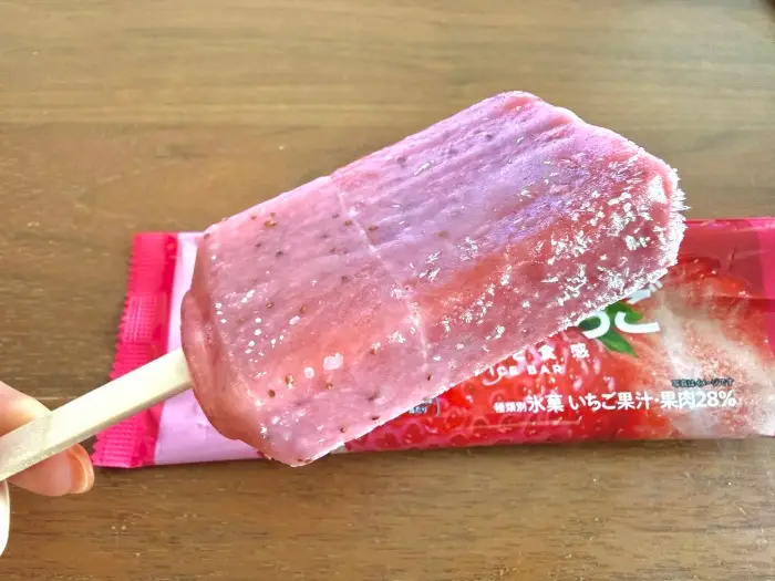 まず、袋を開けてみて思わず「えっみじかっ!」と声がもれてしまった私。アイス部分が想像していたよりも小ぶりで、相対的に持ち手の棒が長く感じられます。