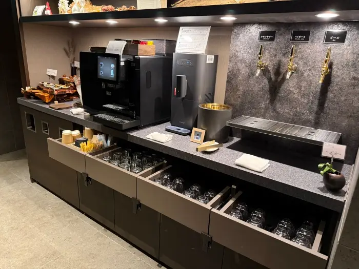 コーヒーや紅茶、ジュースはもちろん、ビールやハイボール、レモンサワーまで揃っており、まさに至れり尽くせり。