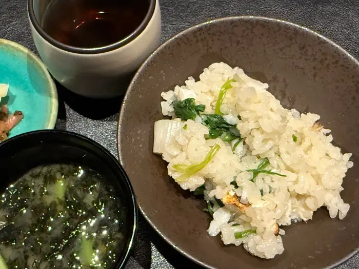 一粒一粒がツヤツヤと輝いていて、お腹がいっぱいのはずなのに、お箸が止まりません。赤出汁と香の物も、ご飯の美味しさを引き立てる名脇役です。