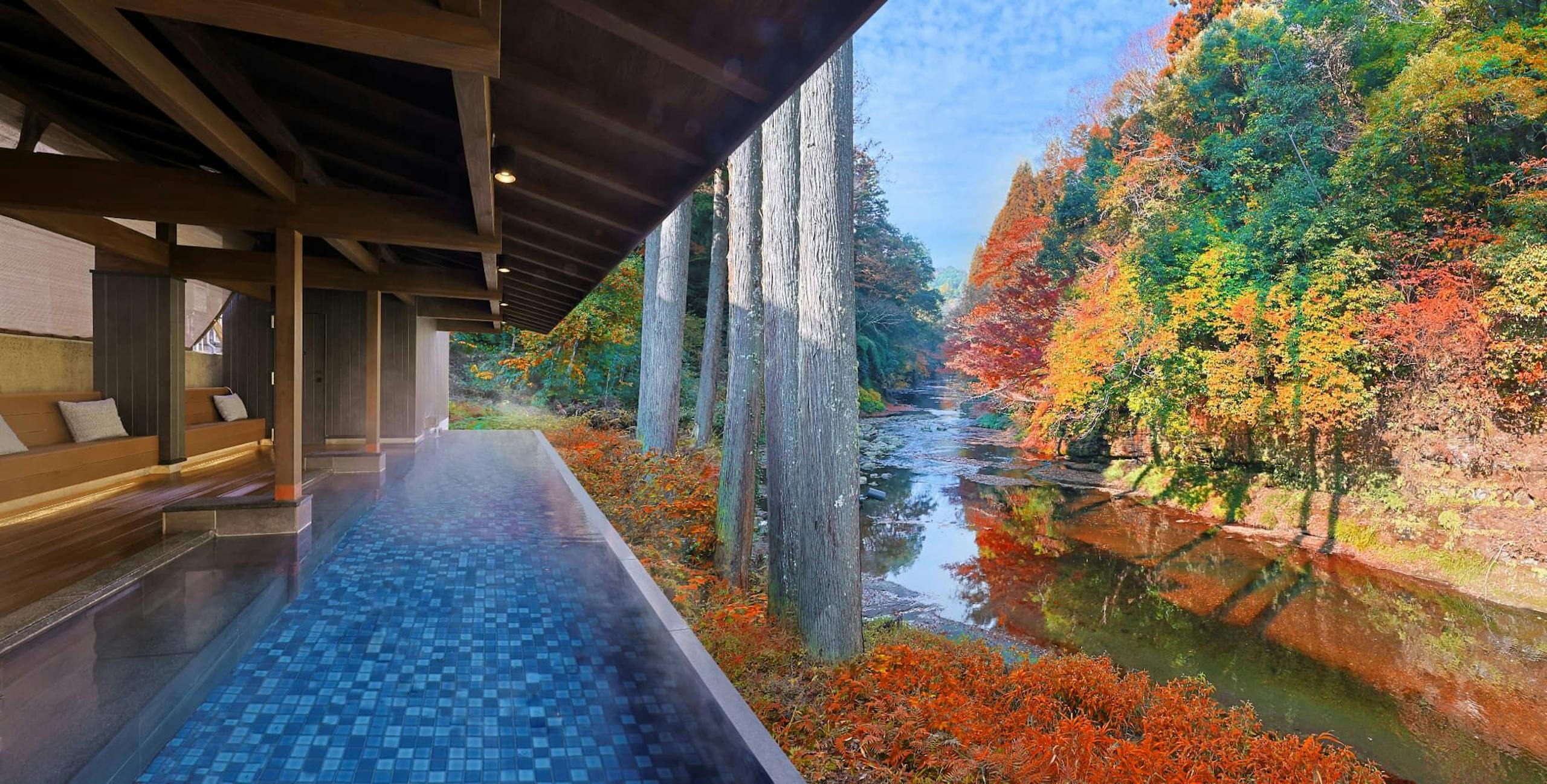 - 自然環境との調和:養老渓谷の渓流を眺めながらの外気浴、鳥のさえずりに包まれる癒しの空間