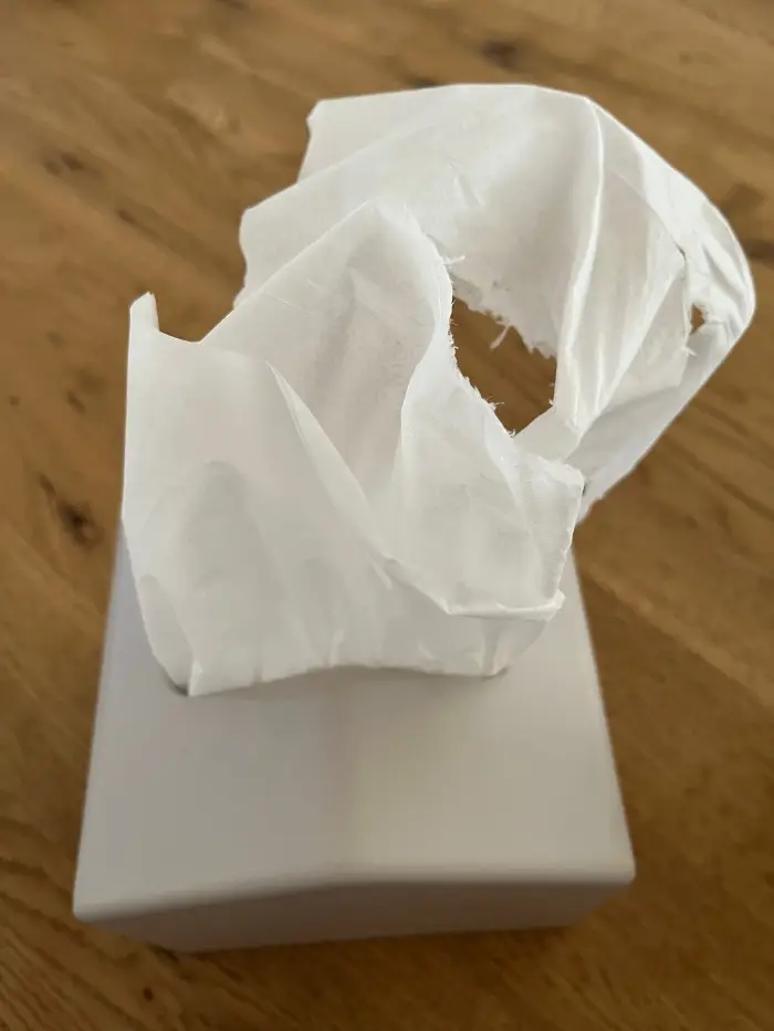 - 最初の数枚が取り出しにくい: ティッシュを満タンに詰めると、最初の2〜3枚は圧迫されて少し破れやすいです。私は使う前に数枚引き出しておくことで対応しています。