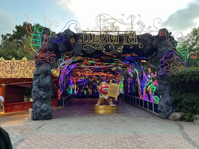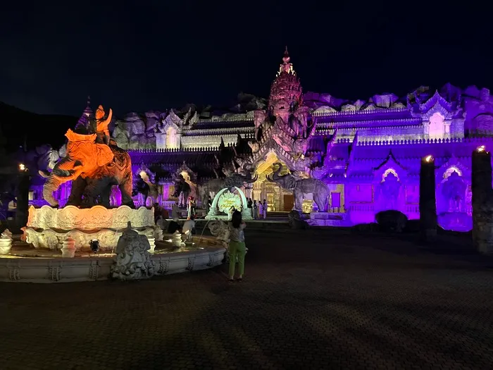 一歩足を踏み入れた瞬間、「うわ、すごい!」と声が出てしまうほど、園内はとにかくゴージャス!タイの神話をモチーフにした建物がカラフルにライトアップされ、どこを撮っても絵になります。園内のスタッフはみんな笑顔でとても親切。困ったことがあっても安心して楽しめました。
