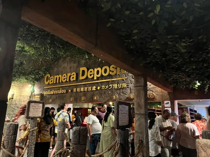 ここで重要な注意点。ショー会場内は、カメラやスマートフォンの持ち込みが禁止されており、入口で預ける必要があります。