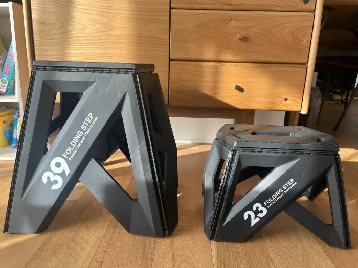 先日コストコを訪れた際、シンプルで頑丈そうな折りたたみ踏み台「セノ・ビーソリッド」の2サイズセットを発見し、購入してみました。