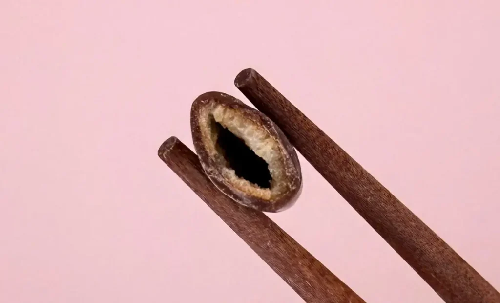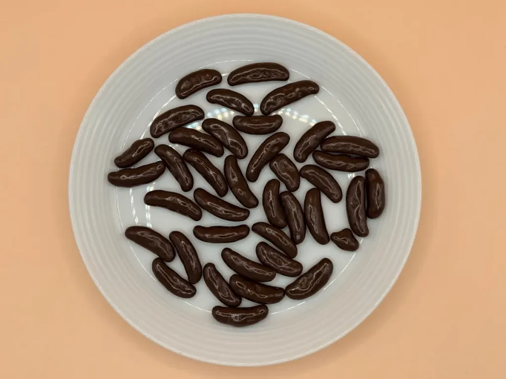 袋を開けると、つやつやと輝くチョコレートの粒たち。大きさは不揃いで、手作り感のような温かみを感じます。一粒口に放り込むと、まずまろやかなミルクチョコレートの甘さが広がります。そして、カリッと小気味よい食感とともに、柿の種の香ばしさと塩気が追いかけてくるのです。