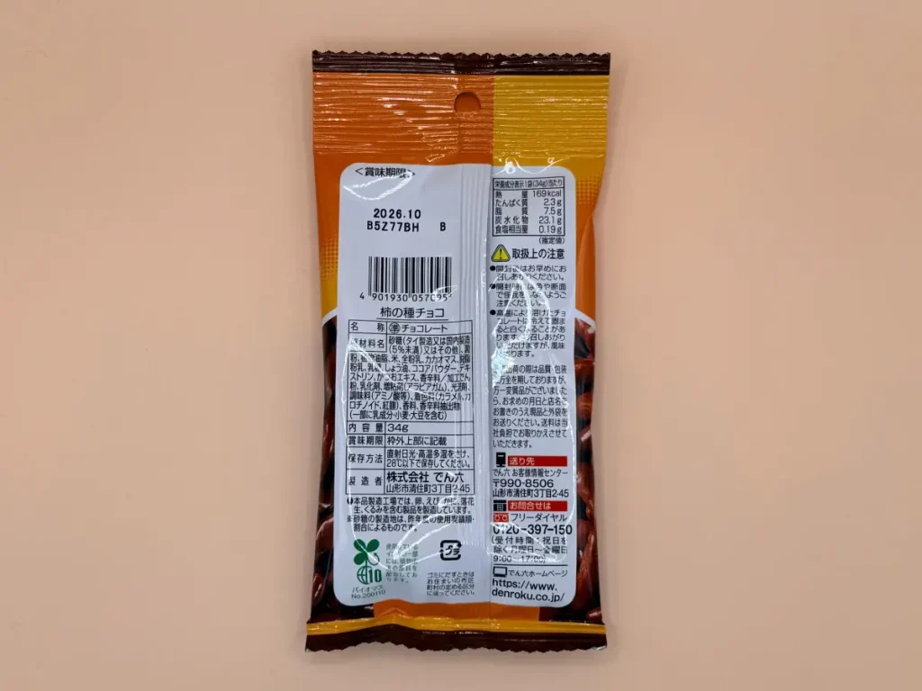 まずは、今回レビューする商品の基本情報から見ていきましょう。私がセブン-イレブンで購入したのは、豆菓子で有名な「でん六」が製造する柿の種チョコです。